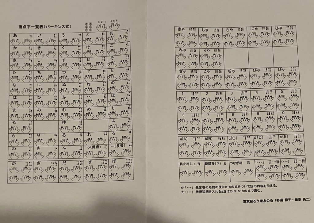 指点字は自分の名前を盲ろうの方の指にやってみましたがちょっと難しかったです。